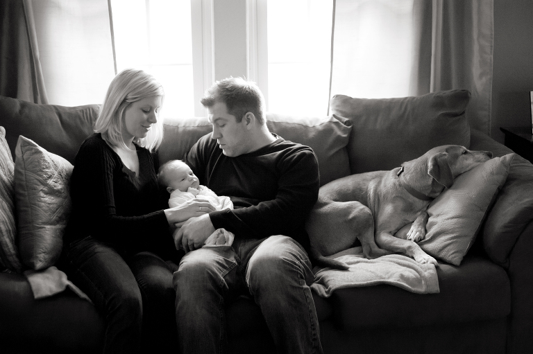 And so of course I was so excited to photograph their beautiful daughter and their new little family. When I showed up to their house with a suitcase full of props and a huge beanbag, I’m not sure that they knew what to make of it! Chris joked, “are you moving in?”. I laughed it off, but I can only imagine how crazy I looked! I have since moved away from a suitcase full of props to just a few, and focus now on lifestyle sessions. And this is the session that showed me that lifestyle is where its at! While I do love the photos of Ayla by herself, there is something magical about the bond shown between Chris, Lauren, Ayla and Utley (the dog!).